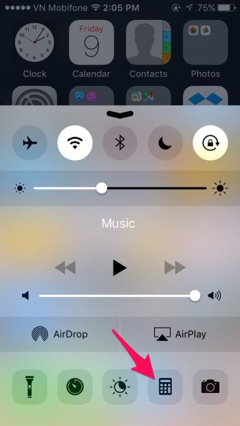 Trên iOS, Apple có đặt một biểu tượng truy cập nhanh ứng dụng Calculator (máy tính số) trong Control Center (khu vực tương tự Quick Settings của Android) để người dùng có thể mở nhanh khi cần tính toán.