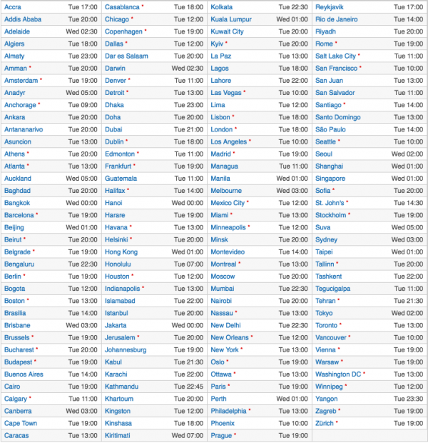 Căn cứ thời gian như vậy, sau đây là danh sách các mốc giờ iOS 10 có mặt tại các khu vực trên thế giới (click phải vào ảnh và chọn Open image in new tab đế phóng to):