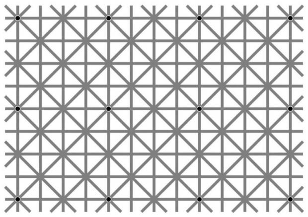 Có ai nhìn thấy được toàn bộ 12 chấm đen cùng lúc trong hình không?