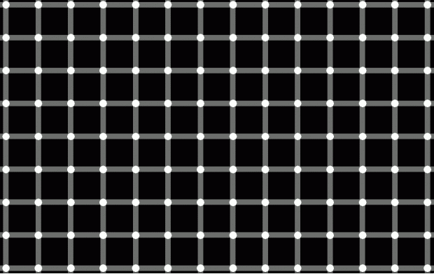Đây là một dạng ảo giác gọi là ảo giác lưới lấp lánh (Scintillating Grid illusion). Nó lợi dụng khuyết điểm cản trở tầm nhìn cạnh bên của võng mạc, và khiến bộ phận cảm quan kích thích ánh sáng trong mắt bạn bị rối loạn với những thứ ở cạnh nhau, thỉnh thoảng bạn thấy được chúng, thỉnh thoảng lại không.