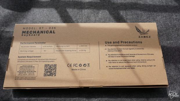 Vỏ hộp của GT-03K vô cùng đơn giảnVỏ hộp của GT-03K được Zadez làm bằng loại giấy cạc tông dày và không màu mè 'hoa lá hẹ', họ chỉ đơn giản in hình sản phẩm cùng một số thông tin chính. Về cơ bản, vỏ hộp này mang lại sự chắc chắn và bền bỉ để bảo vệ sản phẩm nhưng lại không bắt mắt.