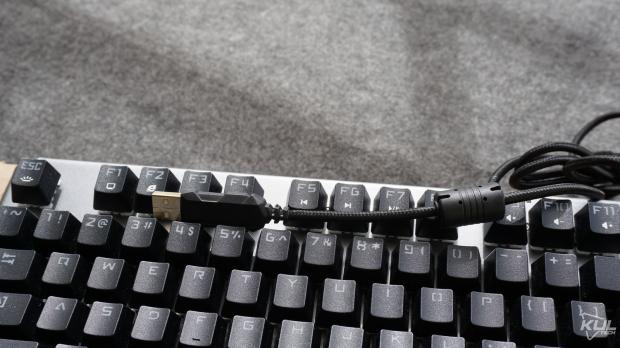 Đầu USB được mạ vàng và có đầu chống nhiễuDây cáp trên GT-03K được bọc dù, đầu USB mạ vàng và có đầu chống nhiễu. Đặc biệt, Zadez còn kèm theo một sợi dây để buộc cáp trong trường hợp bạn muốn mang bàn phím đi đâu đó, không nhiều sản phẩm ở phân khúc này làm điều tương tự.
