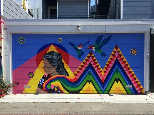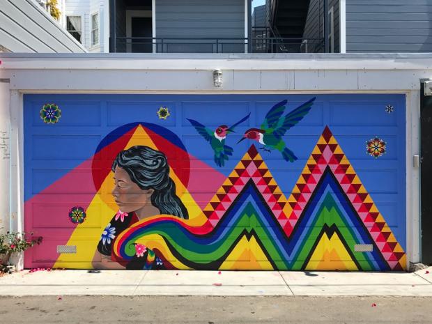 iPhone 7 Plus iPhone 6s Plus13. Một tranh vẽ sặc sỡ trên cổng một nhà để xe.