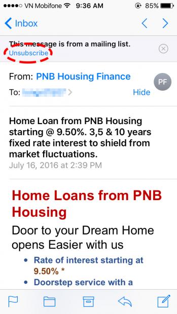 Bất kỳ ai trong chúng ta chắc cũng cảm thấy phiền hà trước các thể loại thư quảng cáo, newsletter, hay thậm chí là spam mail, v.v. Với những mail này, để không phải nhận tiếp nữa, thường ta phải kéo xuống cuối phần nội dung, tìm link Unsubsribe bấm vào để hủy đăng ký.