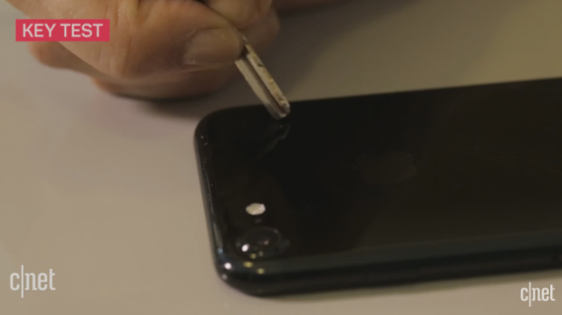 Vì vậy, trang CNET đã tiến hành thử nghiệm độ dễ trầy của một chiếc iPhone 7 Jet Black, đối chiếu song song cùng một chiếc iPhone 6s Plus vốn có mặt lưng bằng nhôm nhám. Mời bạn đọc cùng xem: