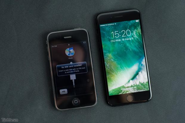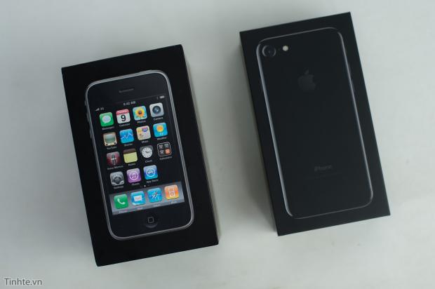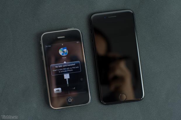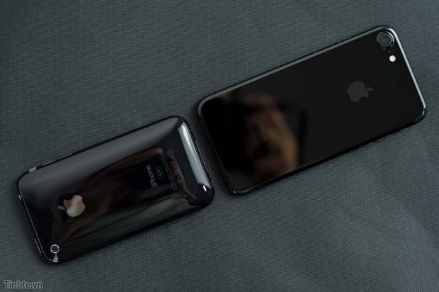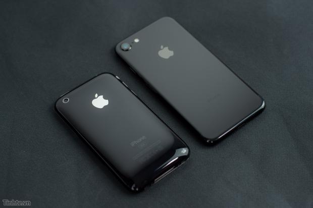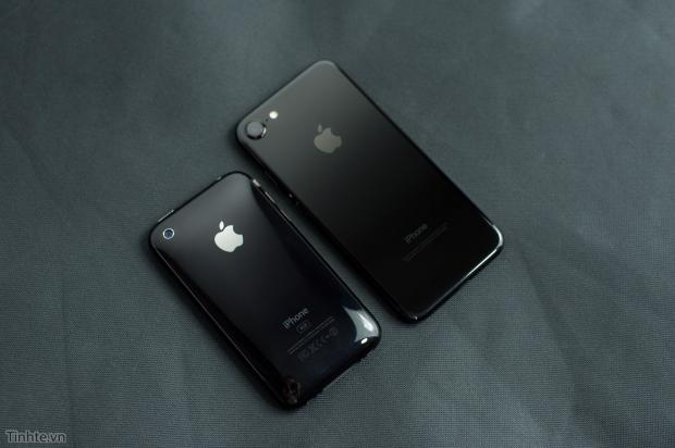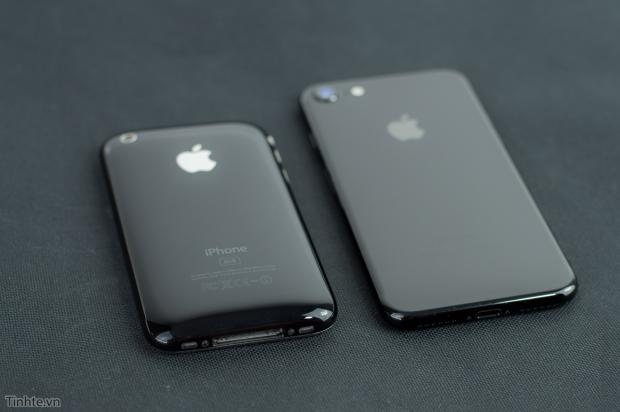 Lưu ý: Sự so sánh chỉ mang tính chất vui vẻ và tham khảo, vì chất liệu mặt lưng 2 máy là khác nhau: iPhone 3G bằng nhựa, còn iPhone 7 là kim loại.