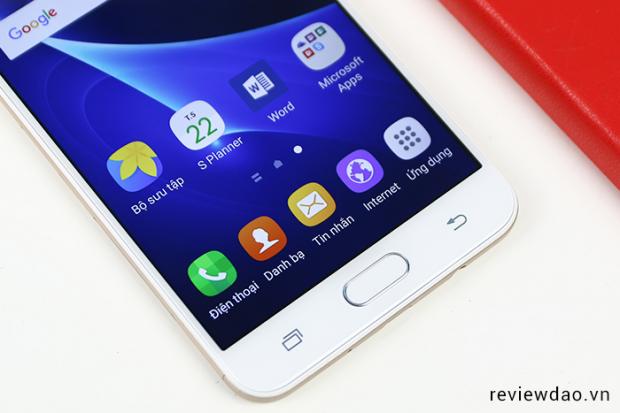Phía dưới là 3 phím, với phím Home cứng tích hợp vân tay. Vân tay tương tự như các sản phẩm samsung khác, cần mở màn hình để sử dụng và tốc độ nhận diện vân tay trên J7 prime là rất nhạy, mở cực nhanh.