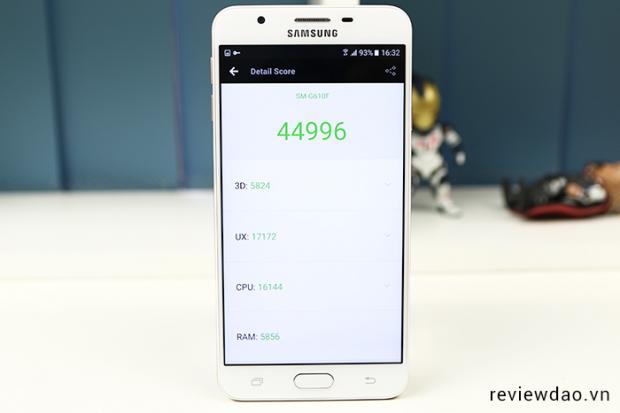 Mình có thử kiểm tra sơ qua hiệu năng bằng phần mềm AnTuTu thì máy đạt điểm số khoảng 44 nghìn, cao hơn khá nhiều OPPO F1s chỉ khoảng 30 nghìn, các thao tác sự dụng cơ bản trên J7 Prime đều rất mượt mà.