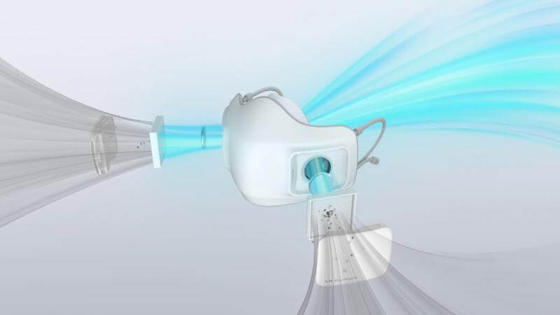 Cảm biến hơi thở được gắn bên trong LG Puricare sẽ giúp khẩu trang nhận biết được nhịp thở của người dùng, từ đó sẽ điều chỉnh tốc độ quạt sao cho phù hợp. Bộ phận quạt kép biến tần DUAL của LG Puricare có 3 chế độ gió, là thấp, trung bình và cao. Tốc độ gió sẽ giao động trong khoảng 20 - 60L/phút.
