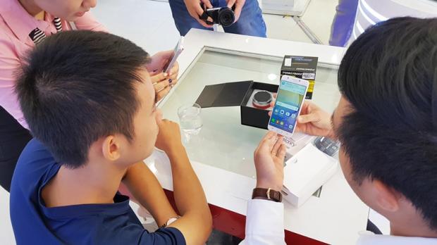 Dòng người xếp hàng chờ đợi đến lượt để được sở hữu Samsung Galaxy J7 Prime