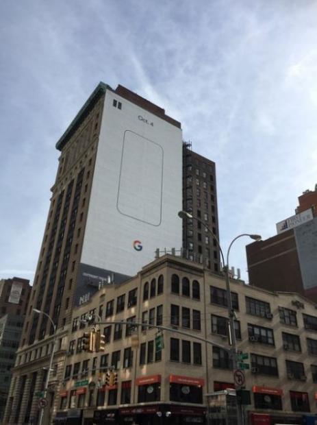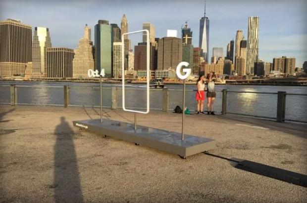 Google đang tổ chức một chiến dịch quảng cáo lớn hướng đến sự kiện ngày 4/10 của mình, nơi hãng sẽ giới thiệu bộ đôi điện thoại chạy Android 7 Nougat gốc mang tên Pixel và Pixel XL. Tại các thành phố lớn ở Mỹ, người ta dễ dàng thấy các tấm poster khổng lồ, các bảng quảng cáo to bằng cả tòa nhà, và cả một bức tượng “khá nghệ thuật” được dựng ở khu Brooklyn, New York với các chi tiết về ngày 4/10, logo chữ G, bộ khung mang hình chiếc smartphone và dòng hashtag #MadebyGoogle.