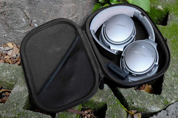 Gần như tất cả các khớp nối của Bose QC 35 đều có thể cử động khá linh hoạt, cho phép chúng ta có thể gấp gọn nó để bỏ vào balo, ngăn túi xách và tất nhiên là cả chiếc hộp đựng khóa kéo khá xịn đi kèm theo tai. Mặt khác, tính linh hoạt khi xoay phần earcup theo trục dọc còn giúp nó dễ dàng ôm sát vào tai người dùng hơn, từ đó cho cảm giác thoải mái khi dùng lâu chứ không cố định như một số tai nghe onear hoặc thậm chí là over ear. Khi không dùng nữa, chúng ta chỉ cần xoay ngang earcup lại, sau đó gấp về phía headband là đã có thể cất gọn nó rồi.