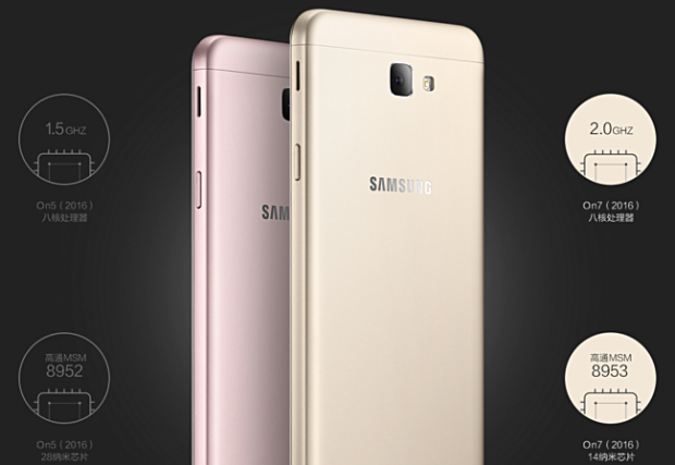 Đúng như rò rỉ, Samsung trang bị cho Galaxy On7 2016 màn hình TFT 5.5 inch độ phân giải full HD, vi xử lý Snapdragon 625 lõi 8 xung nhịp 2 GHz, dung lượng RAM 3 GB kèm bộ nhớ trong 32 GB, hỗ trợ mở rộng ra thẻ nhớ ngoài đến 256 GB, bộ đôi camera sau và trước lần lượt 13 MP và 8 MP.