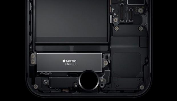 - Taptic Engine: đây là một bộ rung đặc biệt được bố trí bên dưới vị trí nút Home cảm ứng, giúp tạo hiệu ứng rung giống như khi bạn nhấn nút Home cứng. Mỗi lần bạn chạm vào phím Home cảm ứng, bộ Taptic Engine sẽ rung lên một cái với cường độ khá nhẹ. Cảm giác này cũng khá lạ lẫm nên người dùng sẽ phải mất một khoảng thời gian ngắn để làm quen.