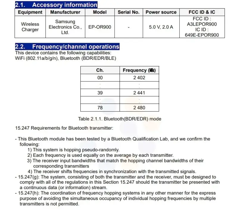 Ba mã model đã đạt được chứng nhận FCC là: SM-900, SM-910 và SM-920. Ngoài ra, còn có một bộ sạc không dây cũng có tên trong danh sách này, với mã model là EP-OR900, đạt được tới mức sạc 10W.
