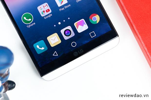 Khi bật sáng màn hình trên phiên bản màu bạc mình đang có ở trên tay đây thì sẽ thấy viền đen xung quanh màn hình khá dày, chắc hẳn sẽ có những người không thích điều này. Cách thiết kế màn hình của LG V20 rất lạ so với thế giới smartphone hiện tại nhưng nó đã từng xuất hiện trên G5 đó là làm cong phần trên và dưới của mặt kính thay vì làm cong 2.5D