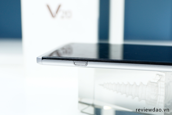 Cạnh phải của máy có một nút bấm đây là phím vật lý để chúng ta có thể mở nắp lưng. Nó được LG thiết kế rất khéo léo để tránh trường hợp vô tình bấm phải.
