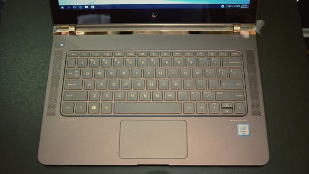 Bàn phím của Spectre 13 sử dụng layout chuẩn và được làm lõm xuống với phần bề mặt phím ngang bằng với chiếu nghỉ tay. Kích thước từng phím và khoảng cách giữa các phím lớn cùng font chữ dễ nhìn, độ nảy khá tốt nên việc gõ phím trên Spectre 13 rất thoải mái.