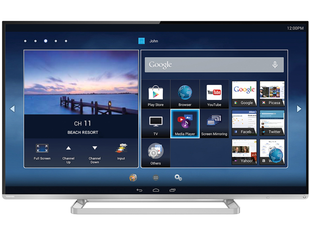 Tiêu biểu cho Smart TV giá rẻ là dòng sản phẩm Pro Theatre L54 của Toshiba. Tại Việt Nam, nhà sản xuất này mang đến model cỡ 40 inch với giá khoảng 9,5 triệu đồng. Điểm nhấn của L54 Series là chạy Android 4.4 Kitkat giúp 'biến' TV thành một chiếc máy tính bảng màn hình cực lớn. Dù không dùng được các thao tác chạm nhưng TV của Toshiba có thể dễ dàng điều khiển và nhập liệu thông qua chuột, bàn phím hay tay cầm chơi game. Với kho ứng dụng rộng mở của Google và kết nối Internet, Pro Theatre L54 đang là lựa chọn của nhiều gia đình trẻ.