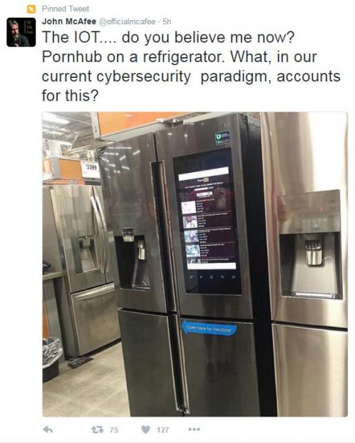 McAfee đã chán nản thốt lên: “Quả là ‘Internet vạn vật’ (Internet of Things), giờ bạn có thể xem phim 18+ ngay trên cái tủ lạnh của mình…”