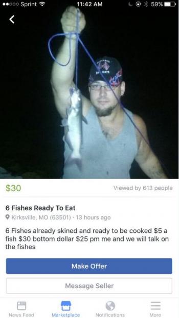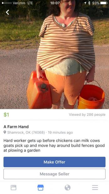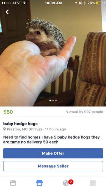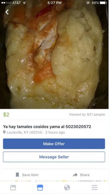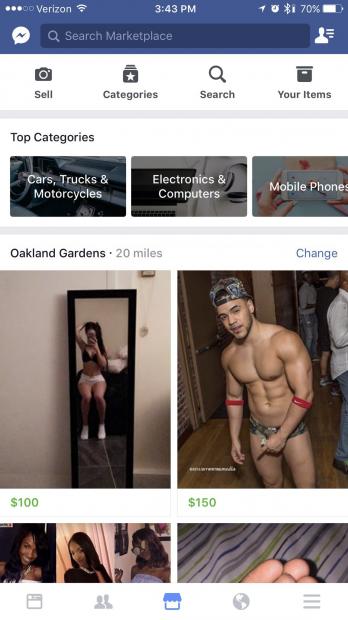 Một người cố bán một... con rắn với giá 300 USD, nhưng sau đó đã bị Facebook hạ xuống. Bức ảnh một cô gái cố tình khoe thân, bên cạnh phần rao bán một... bàn tay trống trơn. Marketplace là nơi khá thích hợp để các thành phần nghịch ngợm post... ảnh selfie, một số trông khá... tởm Ai đó đang muốn bán những con nhím con, giá 50 USD mỗi con Một món bột tamale phong cách Nam Mỹ trông khá gớm, chắc là của ai đó tự làm để bán, giá chỉ 2 USD. Facebook có điều khoản cấm bày bán những thứ liên quan đến nội dung người lớn trên Marketplace, nhưng không phải vì thế mà trong 'chợ' không có những hình ảnh khiêu khích kiểu này.
