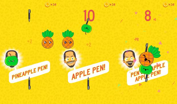 Pineapple Pen có cách chơi đơn giản nhưng không hề dễ dàng, bạn chỉ việc chạm để đâm xuyên qua quả táo hoặc dứa để ghi điểm. Sẽ có nhiều kiểu combo để đạt điểm số khác nhau.