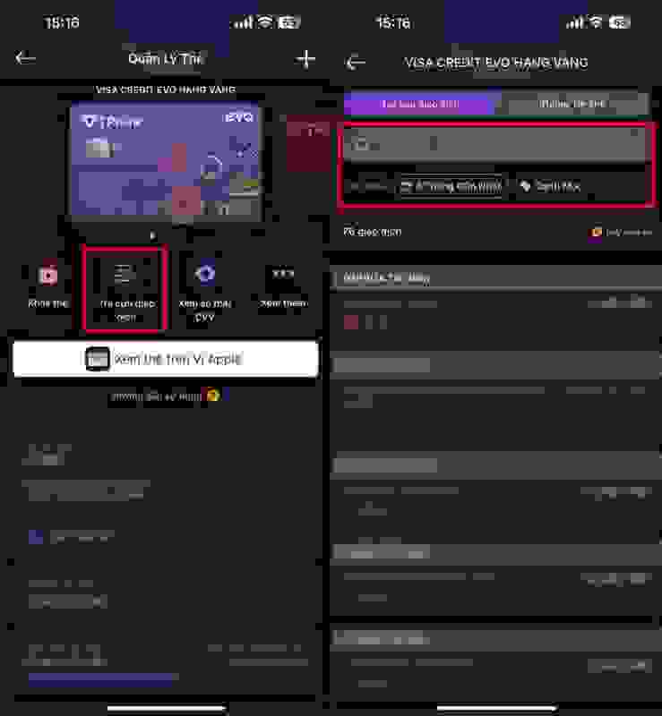 Bước 3: Hệ thống sẽ hiển thị đầy đủ thông tin của thẻ. Để xem chi tiết các khoản thu – chi, bạn chọn mục “Lịch sử giao dịch”. Tại đây, toàn bộ giao dịch trong 3 tháng gần nhất sẽ được hiển thị theo dạng danh sách.