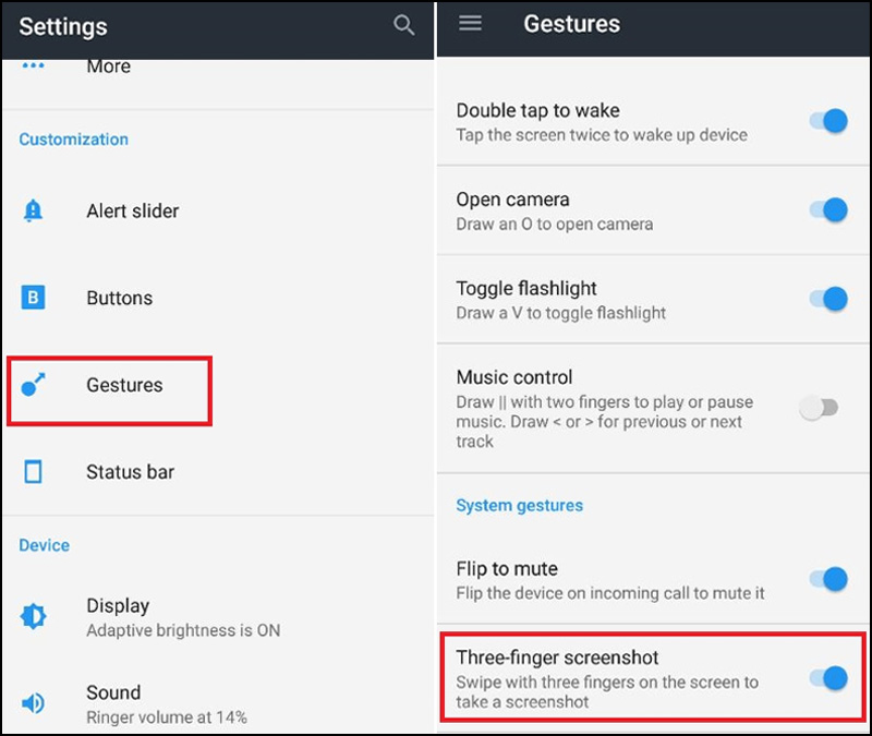 Cách bật và sử dụng cử chỉ vuốt 3 ngón tay để chụp màn hình trên Xiaomi: