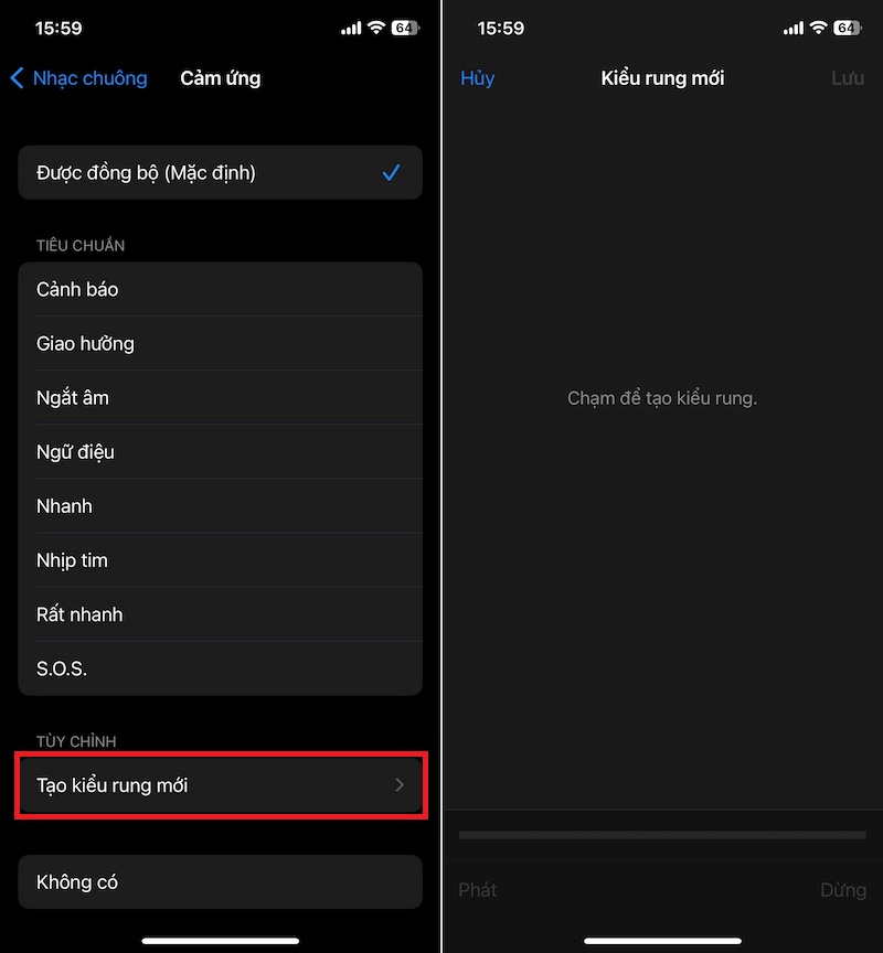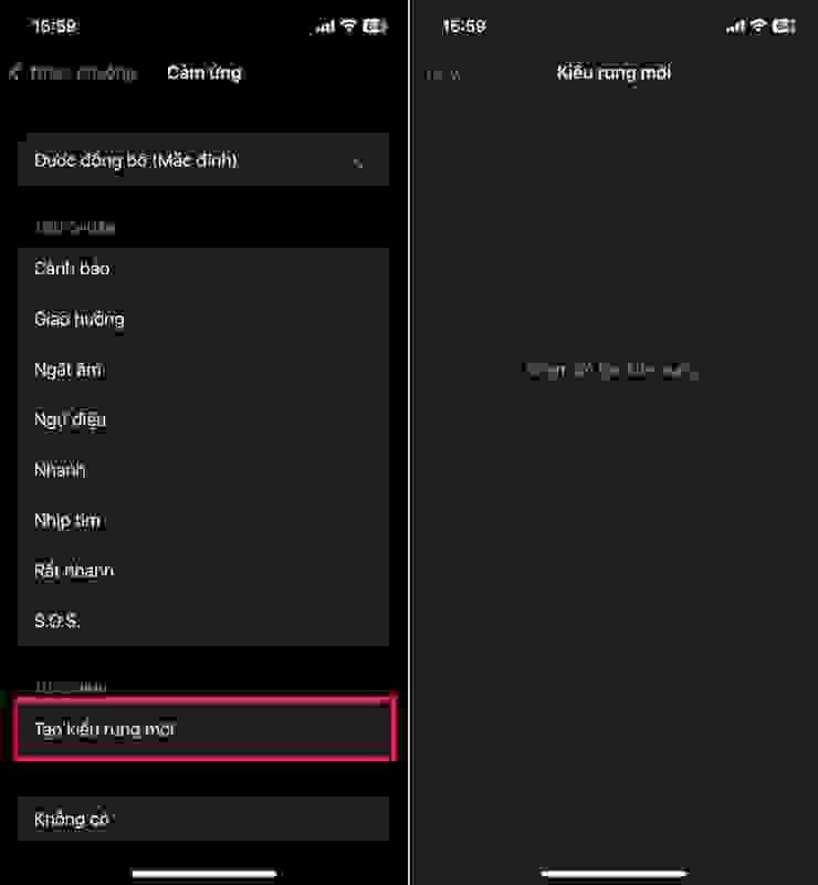 Bước 2: Chọn Tạo kiểu rung mới → Dùng tay chạm vào màn hình để ghi lại nhịp rung mong muốn.