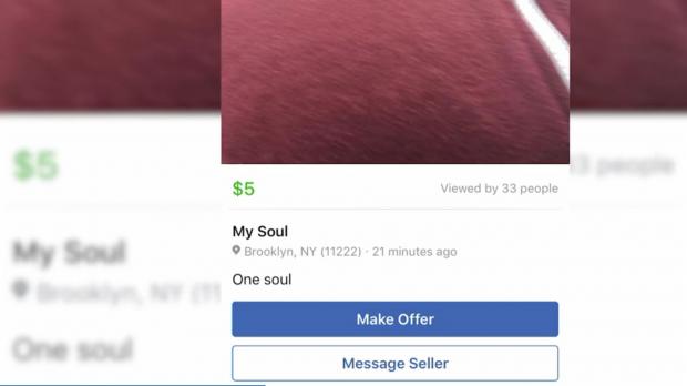 Một người muốn bán... linh hồn trên MarketplaceTrước tình trạng này, Facebook đã chính thức xin lỗi và cho biết do “lỗi kỹ thuật” mà những quảng cáo bán hàng nhảm nhí và phi pháp tràn lan trên Marketplace. Trong điều khoản sử dụng, Facebook liệt kê hàng tá loại sản phẩm bị cấm bán trên Marketplace, bao gồm ma túy, động vậy, “các vật phẩm và dịch vụ người lớn”, rượu và vũ khí.