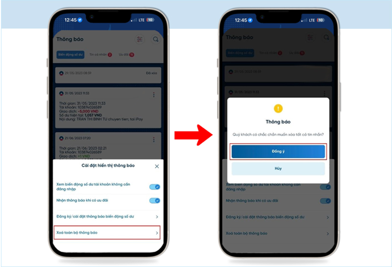 2.2 Xóa toàn bộ thông báo biến động số dư