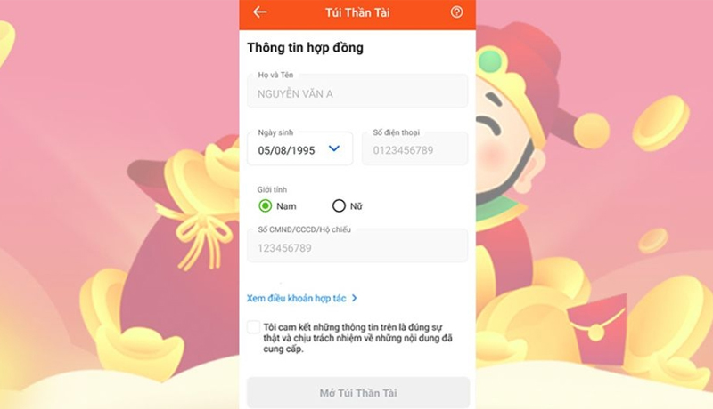 Kiểm tra kỹ thông tin và nhấn Mở Túi Thần Tài