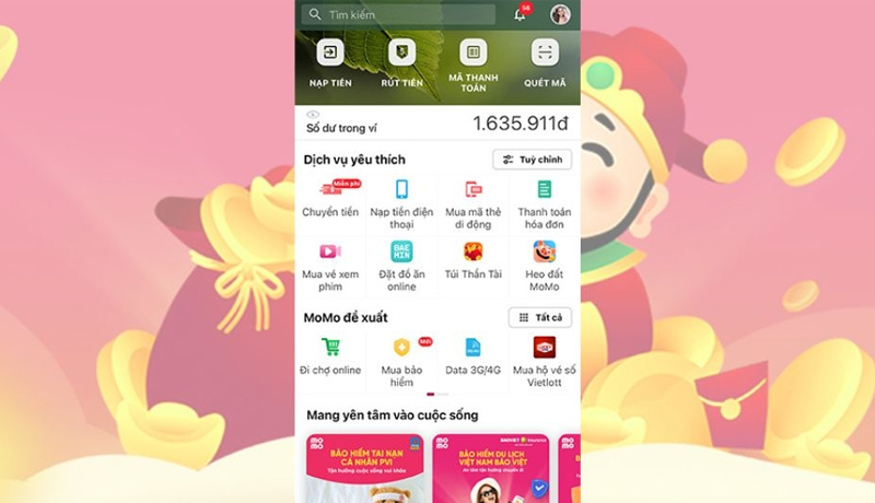 Mở app MoMo và chọn Túi Thần Tài