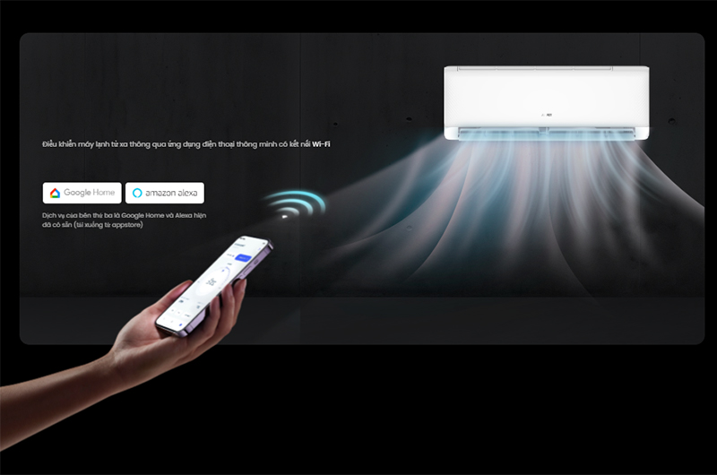 - Điều khiển dễ dàng: Bên cạnh việc sử dụng remote thì người dùng có thể kết nối và điều khiển máy lạnh qua Google Home hoặc bằng Amazon Alexa.