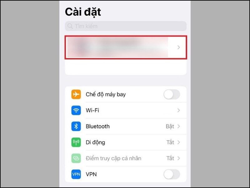 Bước 1: Khởi chạy ứng dụng Cài đặt trên điện thoại > Tìm và nhấn vào tài khoản ID Apple phía trên cùng.