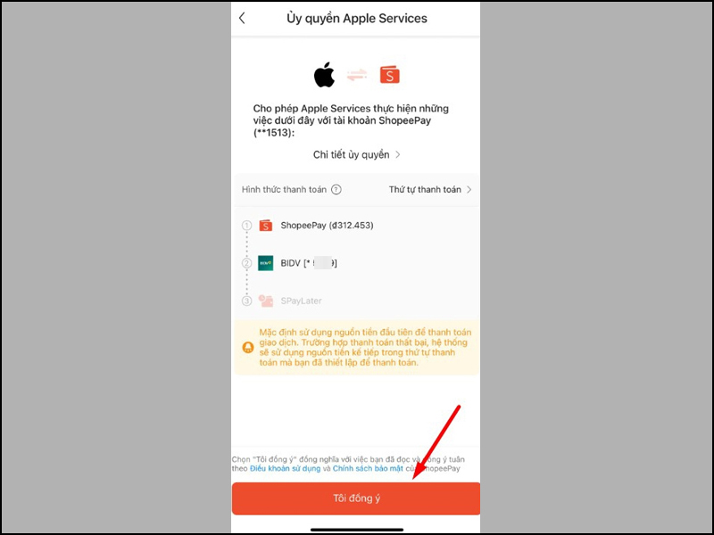 Bước 4: Chuyển sang giao diện Ủy quyền Apple Services > Nhấn Tôi đồng ý để xác nhận ủy quyền và hoàn tất quá trình thêm phương thức thanh toán.