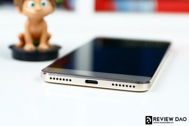 Cạnh dưới có sự xuất hiện USB Type-C và 2 dải loa ngoài, vẫn giống với các thế hệ gần đây Le Pro 3 đã bị loại bỏ cổng tai nghe 3.5mm. Chúng ta cũng được LeEco tặng cho 1 adapter chuyển từ Type-C sang cổng 3.5mm.