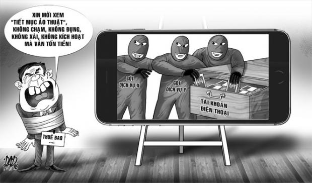 Không hề biết đến sự tồn tại của các dịch vụ này, chị Trang ngụ tại Q.Tân Phú (TP.HCM) kể, một người bạn của chị vô tình được chỉ dẫn đã mách nước lại cho chị và thật bất ngờ, chị được báo đang sử dụng một loạt dịch vụ từ nhà mạng Viettel gồm: dịch vụ nhạc chờ cước 9.000 đồng/tháng, SMSFACEBOOK cước 10.000 đồng/tháng, Keeng Vip cước 10.000 đồng/tuần. Tổng cộng 3 dịch vụ này chị Trang cũng phải chi trả gần 60.000 đồng/tháng. Chưa hết, chị Trang lấy điện thoại của con gái và chồng thử kiểm tra thì điện thoại nào cũng đều có từ 2 - 3 dịch vụ mà không ai biết đó là gì. “Nhà tôi 3 người sử dụng điện thoại, chỉ tính riêng những dịch vụ gia tăng đó đã mất gần 200.000 đồng/tháng”, chị Trang ấm ức và cho biết vợ chồng chị chỉ giới hạn cước sử dụng cho con gái mỗi tháng 100.000 đồng. “Bị bẫy mất mấy chục nghìn thế này thì con gái chỉ còn khoảng 30.000 - 40.000 đồng để sử dụng. Mình cứ la con hoài vì dùng nhanh hết tiền, ai ngờ...”, chị nói.