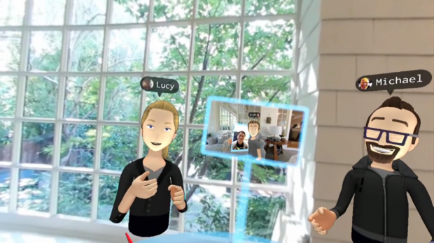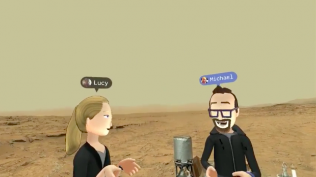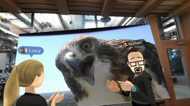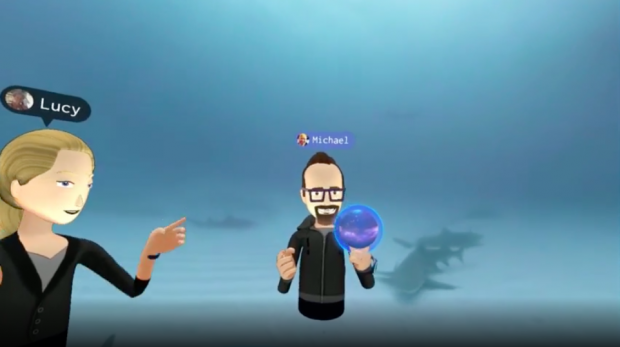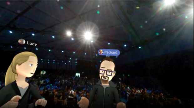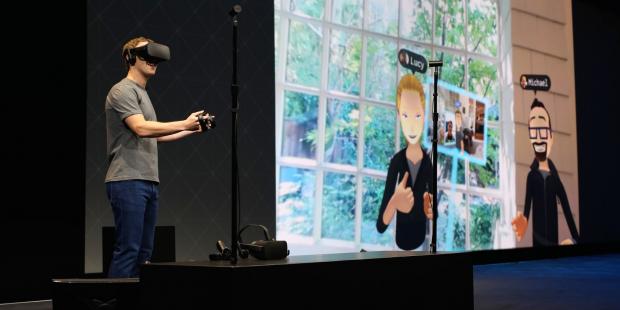Đầu tiên, Zuckerberg xuất hiện trên sân khấu vào đeo vào chiếc Oculus Rift. Sau đó anh giới thiệu các nhân vật đại diện (avatar) cho 2 đồng nghiệp Lucy và Michael. Điều này hứa hẹn tính năng tùy biến cao cho nhân vật đại diện của người dùng Facebook trong môi trường thực tế ảo.