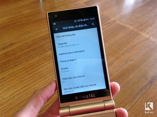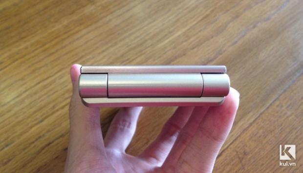 Là điện thoại nắp gập nên phần bản lề của Freetel Musashi rất to và dày. Tuy nhiên cảm giác khi đóng/mở màn hình là rất chắc chắn, không hề có hiện tượng ọp ẹp.