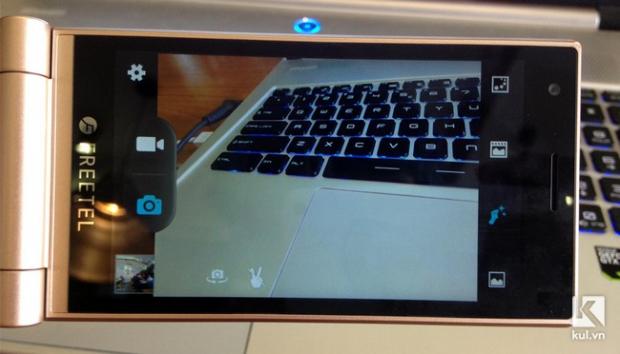 Màn hình chính bên trong cũng là cảm ứng với kích thước và độ phân giải giống như màn hình phía trước. Bên trên là camera độ phân giải 2MP hỗ trợ video call. Việc chụp ảnh selfie trên chiếc Freetel Musashi cũng rất thú vị.