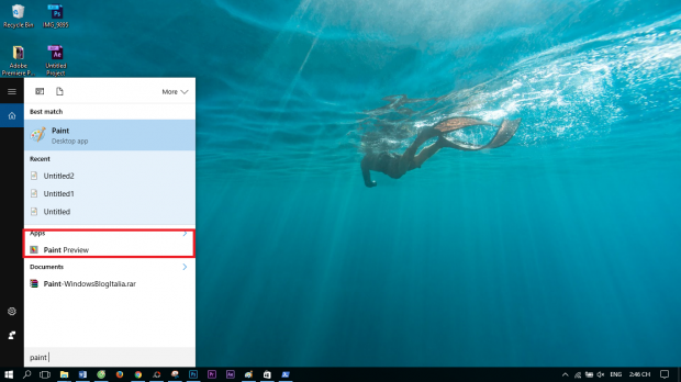 Bước 6: Vào Cortana tìm kiếm sẽ có Paint Preview để sử dụng