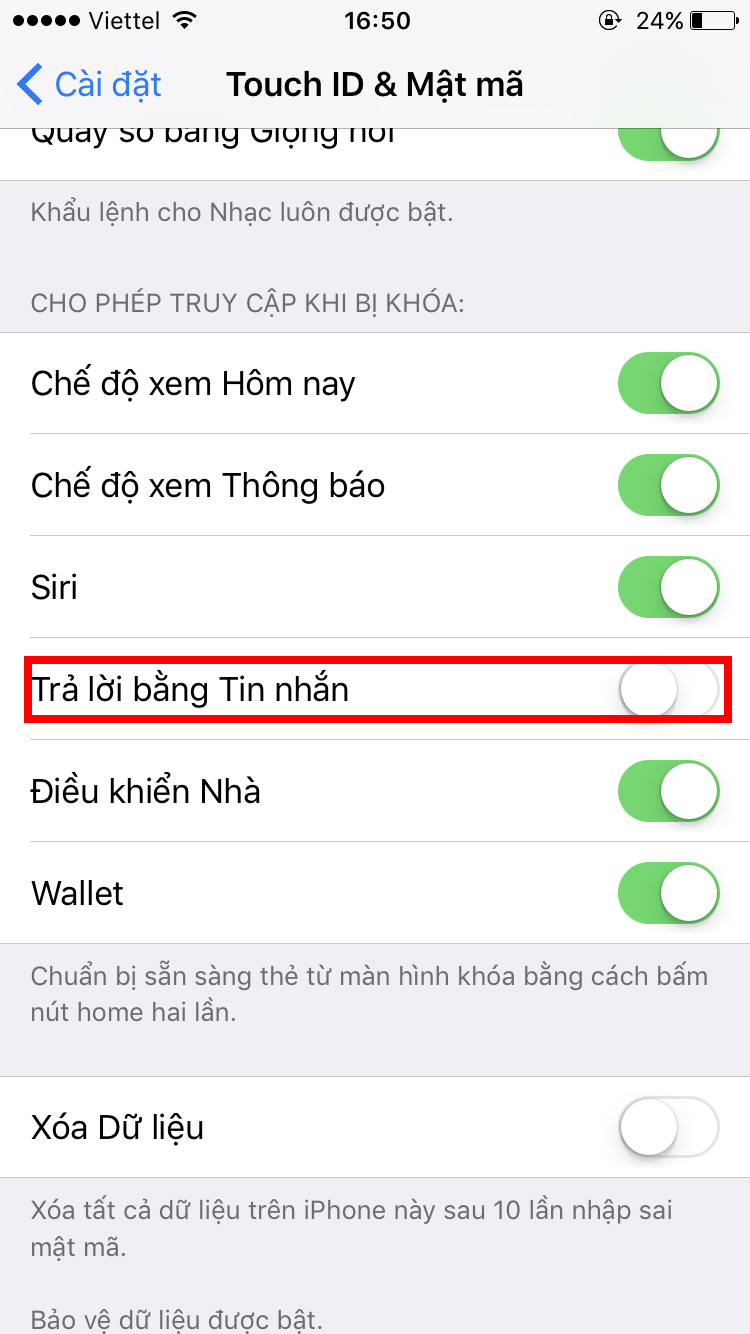 Tắt tính năng trả lời tin nhắn từ màn hình khóa