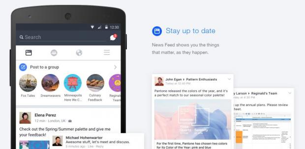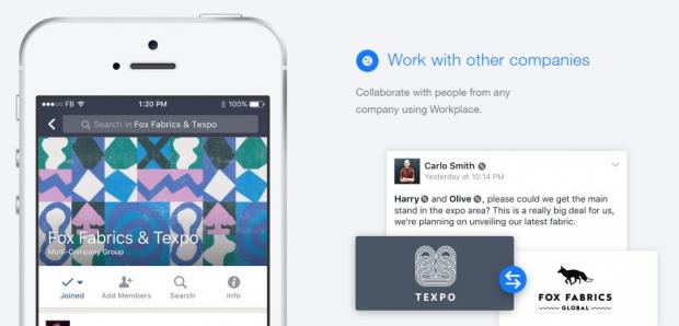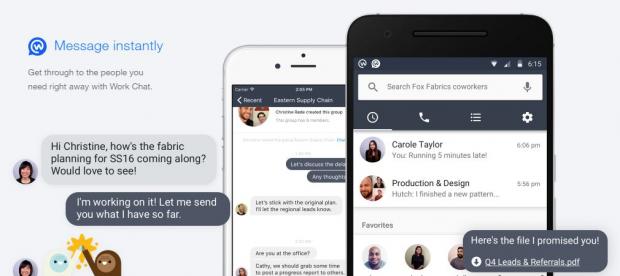Ban đầu có tên là Facebook at Work, nay đổi tên thành Workplace và ra mắt chính thức, đây là ứng dụng giao tiếp và mạng xã hội nội bộ với các tính năng quen thuộc của Facebook dành cho người dùng văn phòng.