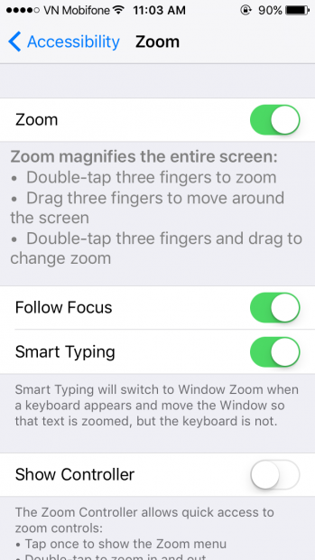 3. Gõ 2 lần bằng 3 ngón tay lên màn hình để thoát chế độ Zoom.