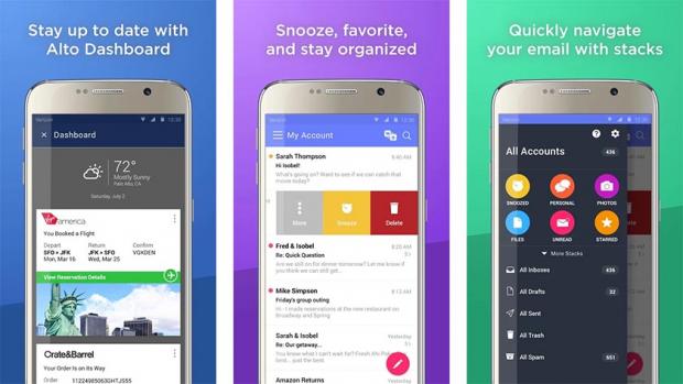 Alto là ứng dụng emial tấ cả trong một, giúp bạn có thể đăng nhập vào tất cả tài khoản của mình và kiểm soát chúng trong một hộp thư chung. Ứng dụng có tính năng “Dashboard” giúp thông báo những email đáng chú ý. Alto hỗ trợ nhiều dịch vụ email khác nhau từ POP3, IMAP, Outlook, iCloud và Microsoft Exchange. Ưu điểm khác của nó là rất nhỏ gọn và chạy rất nhanh.