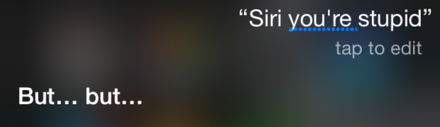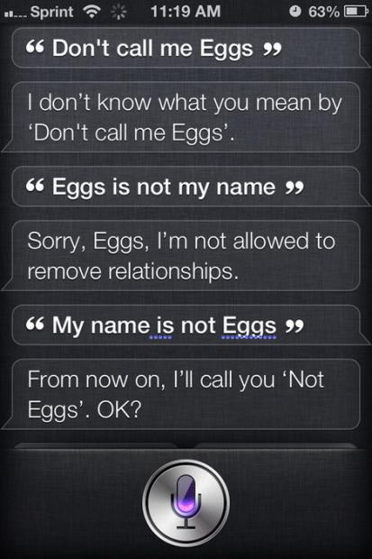 Một lỗi khá nặng của Siri là nó không phân biệt được ý nghĩa của câu “Ông X là ai?” và thường trả lời bằng cách trưng ra… thông tin liên lạc của người đó. Mossberg đã thử hỏi Siri “Tim Cook là ai?”, Siri bèn lục tìm trong sổ danh bạ của iPhone và trưng mục “Tim Cook” ra.
