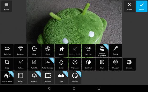 So sánh với Photoshop Express, Aviary từng trông đơn giản hơn. Nhưng giờ thì đã khác, giao diện cũng có những chi tiết xám và trắng như các sản phẩm khác của Adobe. Aviary vẫn là một ứng dụng mạnh. Bạn có thể thêm các hiệu ứng bộ lọc, chọn kiểu khung cho ảnh, hay gắn thêm các sticker. Ứng dụng này là công cụ cực kỳ thích hợp cho ai thích tạo “meme” (ảnh chế Internet)