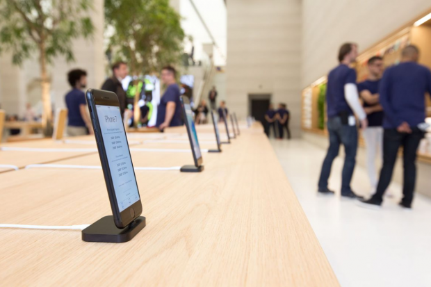 Thế nhưng, tại một số cửa hàng Apple Store tại Canada và Anh, kể cả cửa hàng mới chỉnh trang tuyệt đẹp tại London, Apple đã bỏ các sợi dây bảo vệ này. Các chiếc iPhone chỉ đơn giản đặt trên đế Lightning Dock, kèm dây Lightning để sạc mà thôi.