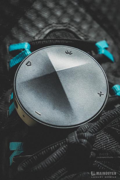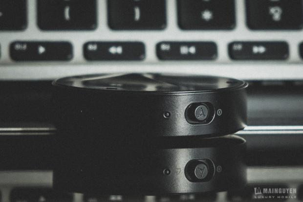 Phần hoàn thiện vẫn có thể liệt vào loại khá, các chi tiết nhỏ được chăm chút khá tốt. Phần mặt trên thiết bị với các đường vát nhô lên theo kiểu bất đối xứng vẫn phảng phất ngôn ngữ thiết kế không lẫn vào đâu của AK. Trên đó chúng ta có các nút bấm như kết nối Bluetooth, tăng giảm âm lượng và play/pause bài hát.